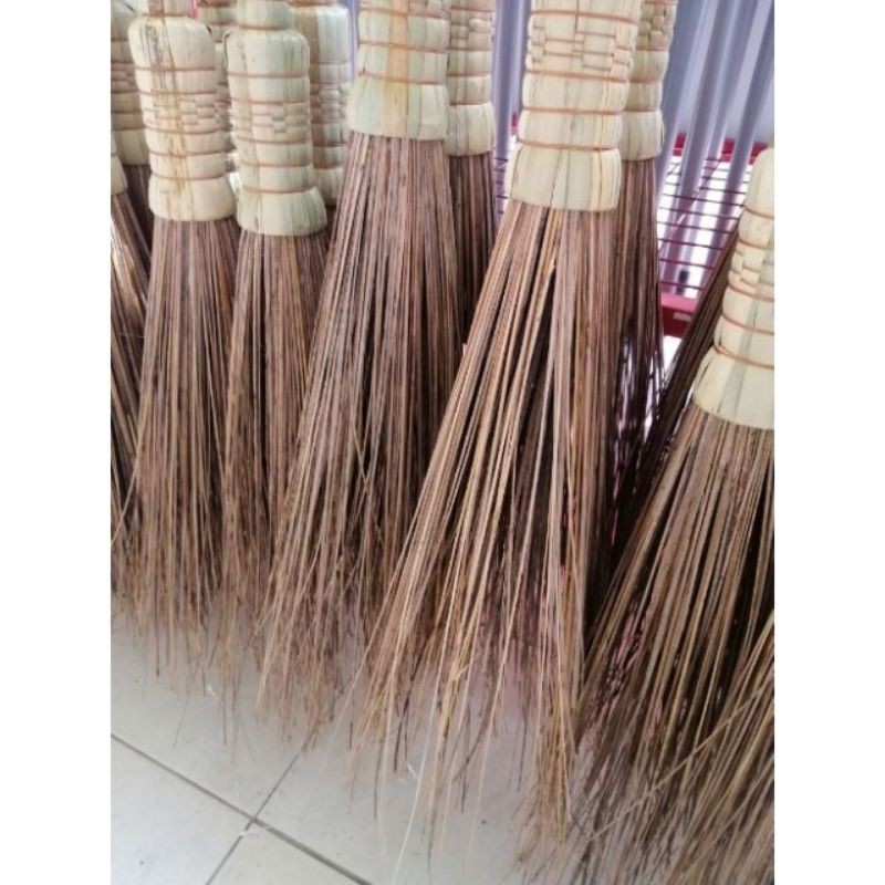 Bertangkal berhulu penyapu lidi daun kering keras batang buluh coconut leaf broom.